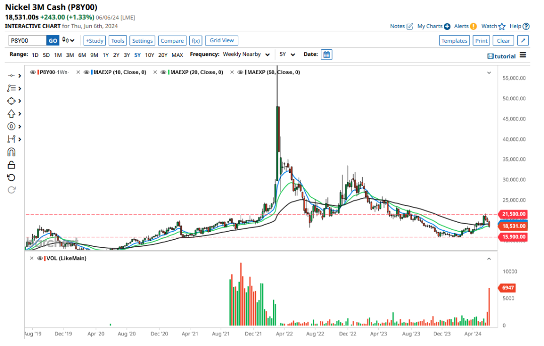 據(jù)環(huán)球郵報(bào)2024年6月9日消息,本周我們先來看看Nickel 3M Cash(P8Y00),下跌了7.64%。